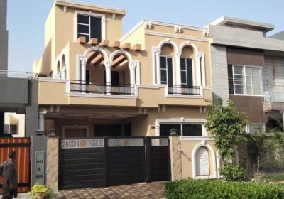 5 marla Brand New House For Sale In Model City 1 faisalabad having 3bedrooms 2Tv lounge 2kitchen drawing room carporch ideal location demand 1,80,00,000.