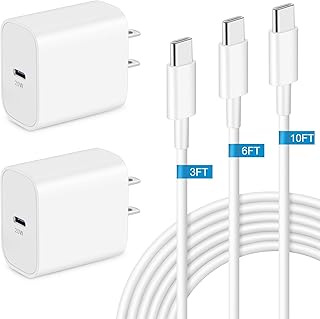 USB C Charger for iPhone 15/15 Plus/15 Pro/15 Pro Max, 2Pack 20W Type C Fast Wall Charger Power Adapter + 3FT 6FT 10FT Long USB C to C Cable for iPad 12.9/11 inch, iPad Air 5/4th, iPad 10th, iPad Mini,$27.99. Saving , Availability from Amazon
